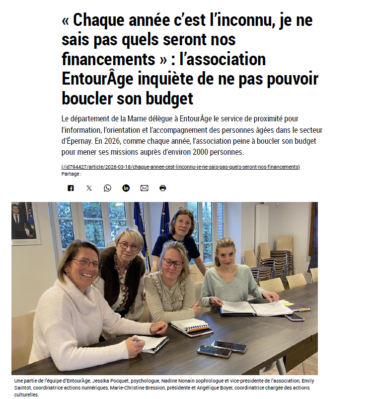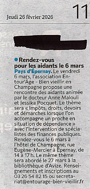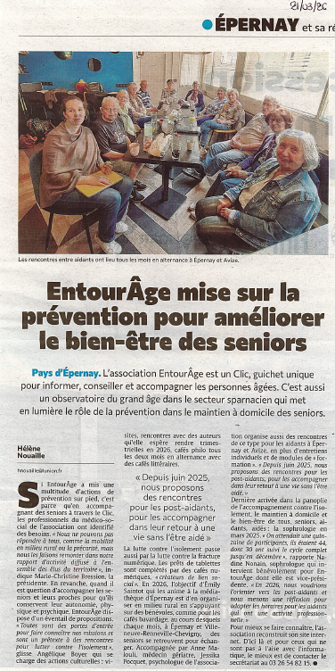 Soucieuse de communiquer avec le plus grand nombre, l’action de l’Association « EntourÂge bien vieillir en Champagne » est souvent relayée par la presse, et notamment la presse locale.